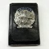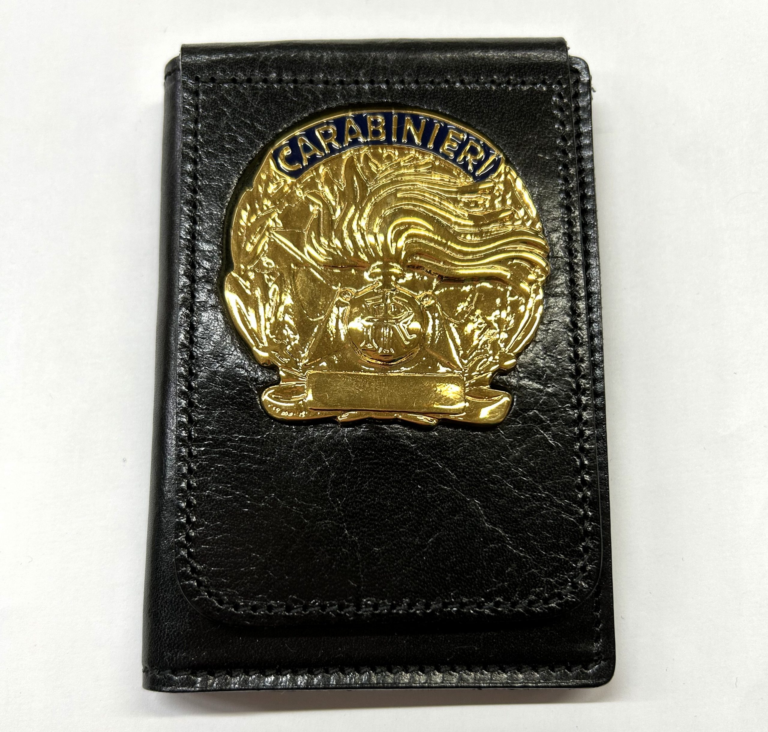Portafoglio verticale in pelle con placca oro